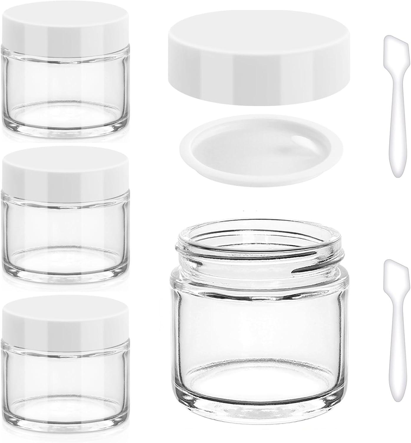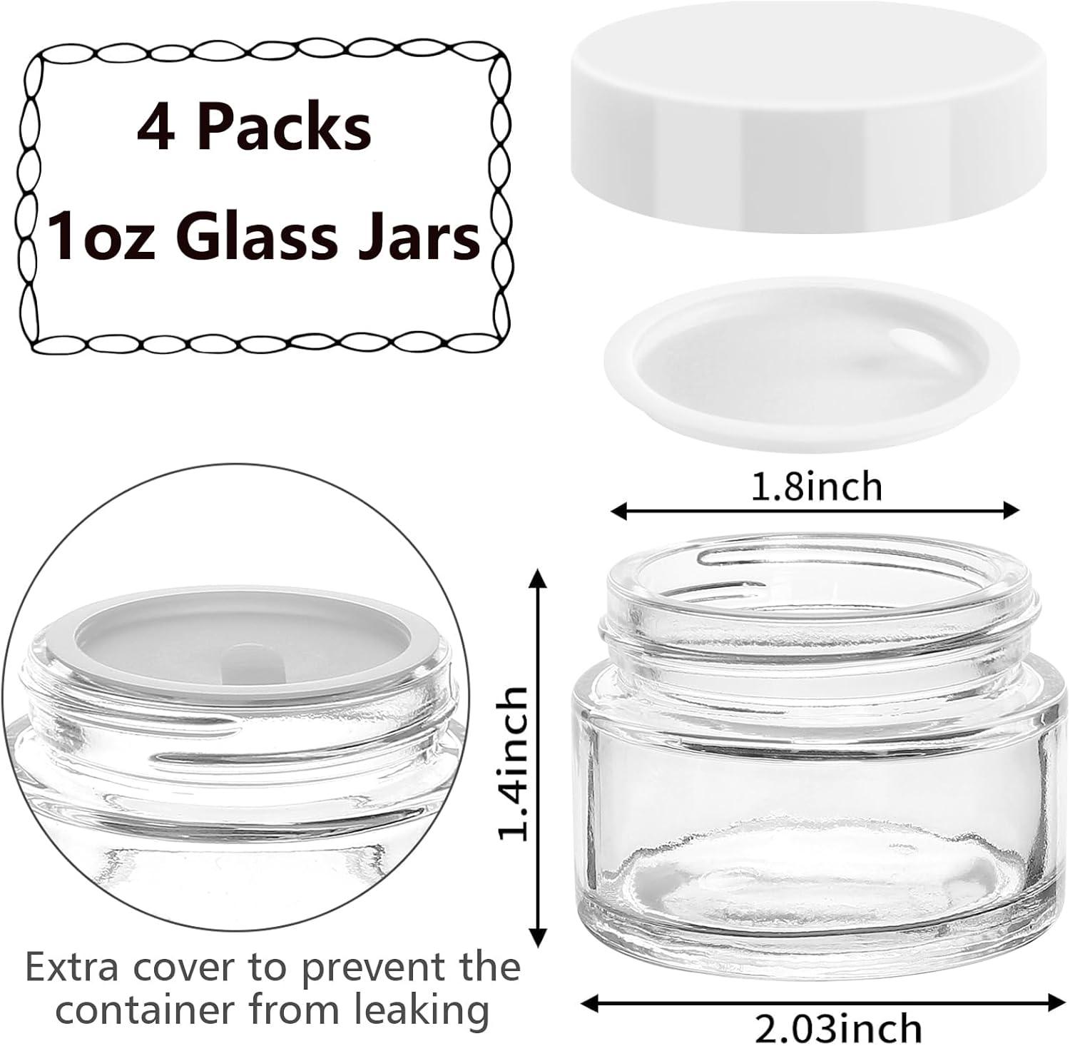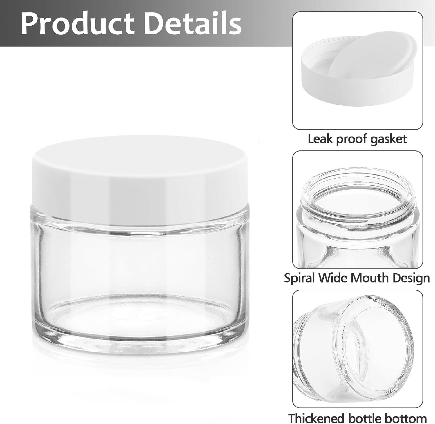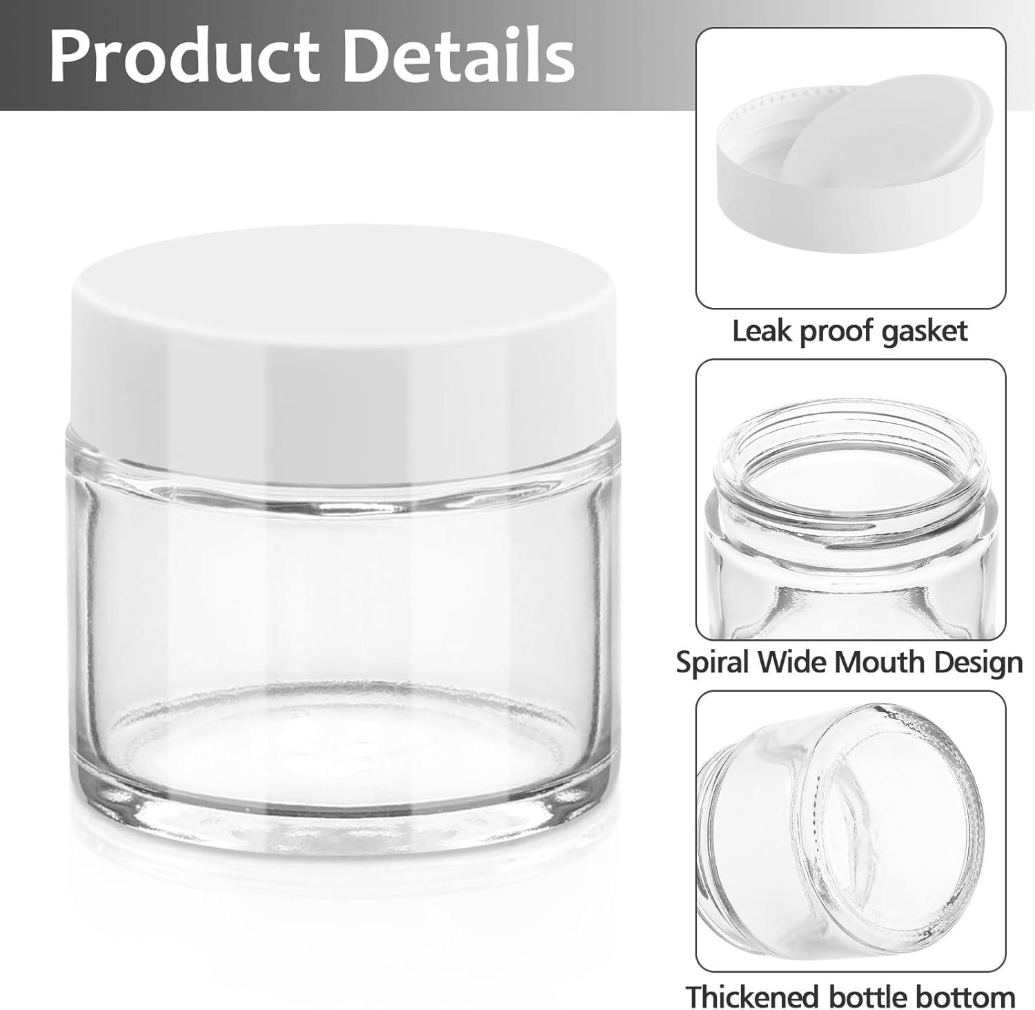 【PREMIUM QUALITY】These round cosmetic jars with lids are crafted from high-quality, sturdy glass for exceptional durability. Each glass cosmetic jar comes with a white plastic lid and inner liner for added convenience. Featuring straight sides, a wide mouth, and thick walls, they are built to last and make filling and emptying effortless.