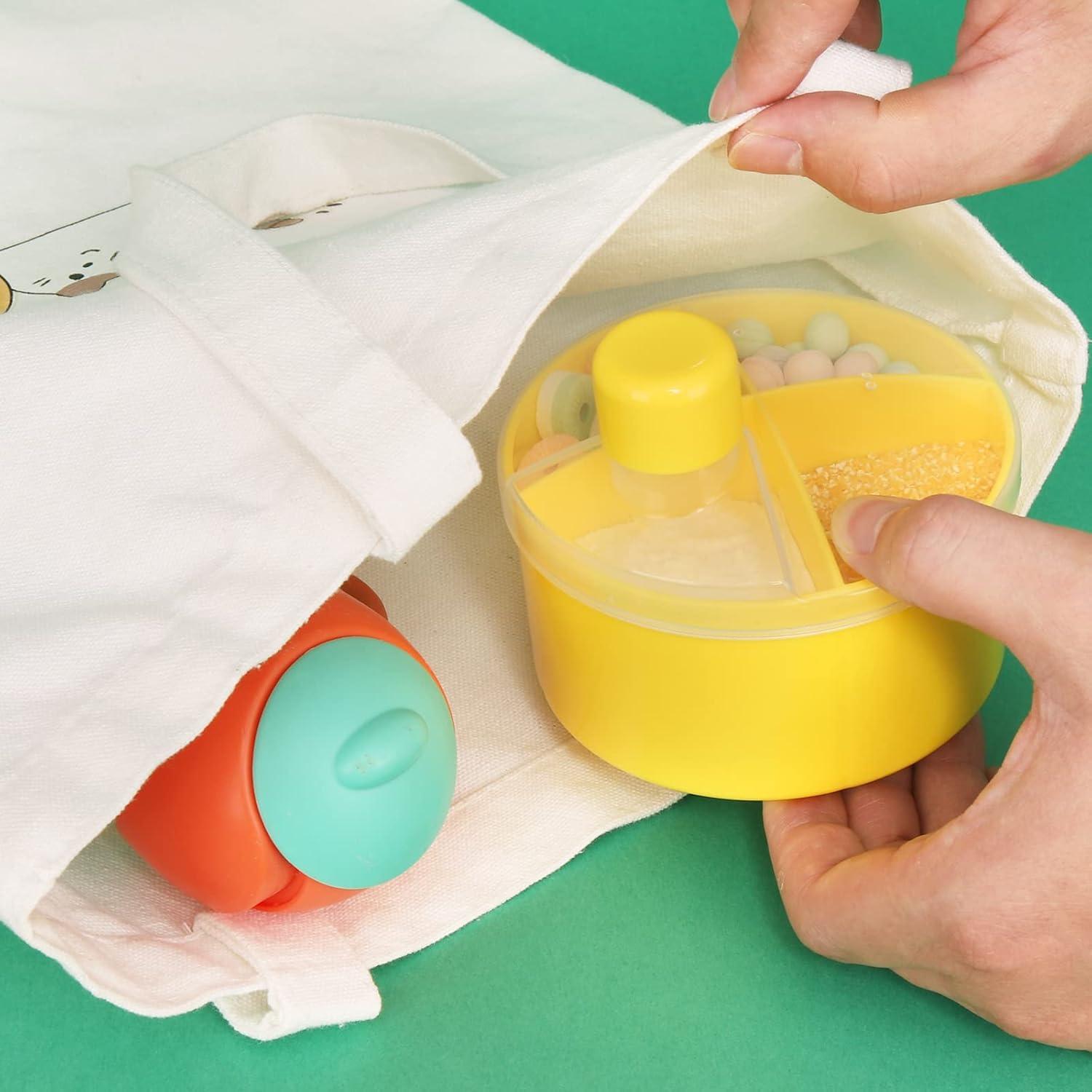 Four Compartments Design – Four serving-size compartments are ideal for powdered formula or cereal. Good sealing ensures formula powder remains securely in each section.