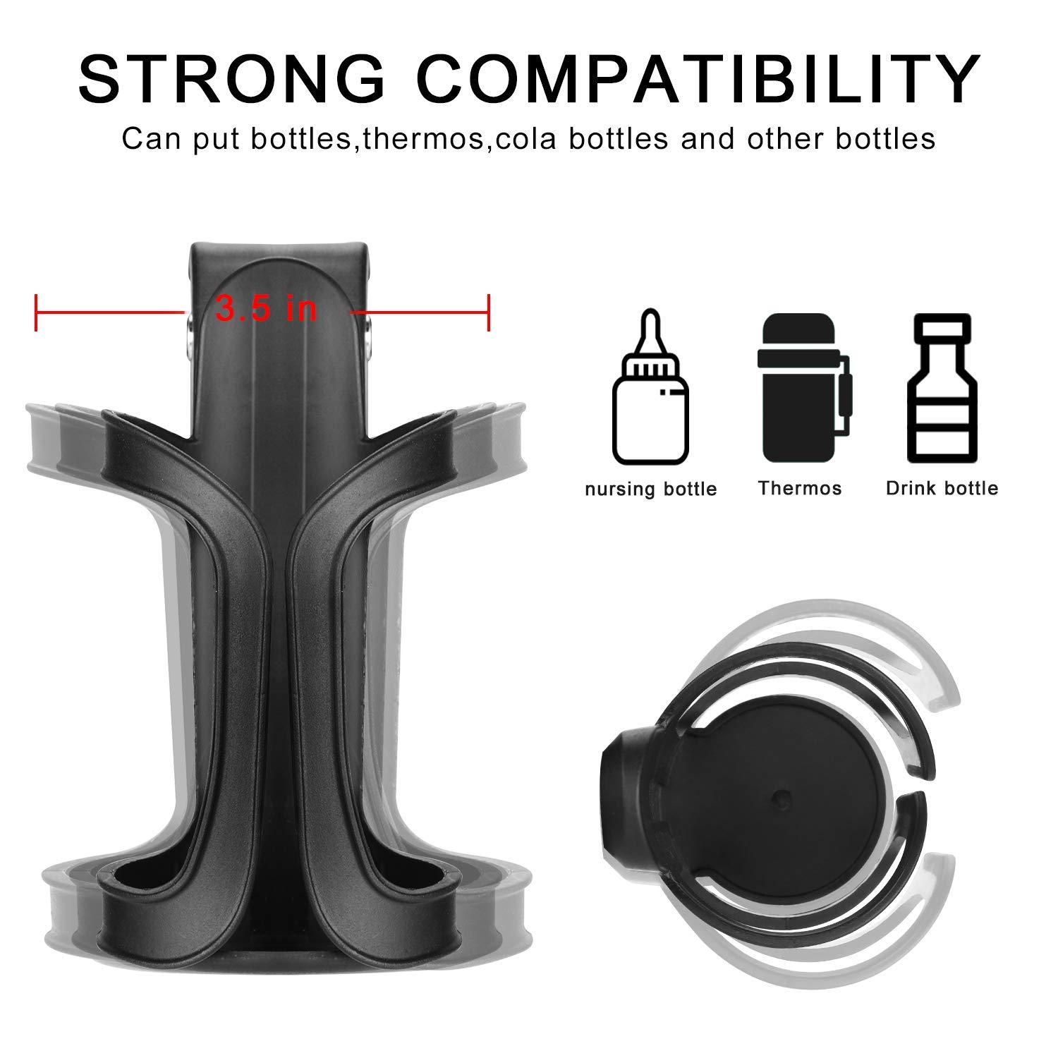 Holds Most Bottles & Phones: Accommodates bottles, cups, and mugs with diameters up to 3 inches (75mm), making it ideal for baby bottles, travel mugs, water bottles, and standard drink cups. The phone holder compatible with most cell phones up to 6.8 inches.