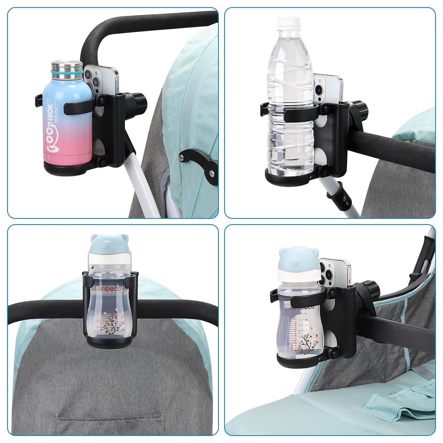 Accmor Stroller Cup Holder with Phone Holder, Foldable Universal Cup Holder, 360 ° Rotatable Bottle Holder for Stroller, Bike, Wheelchair, Walker, Scooter(Large Caliber-1pc)