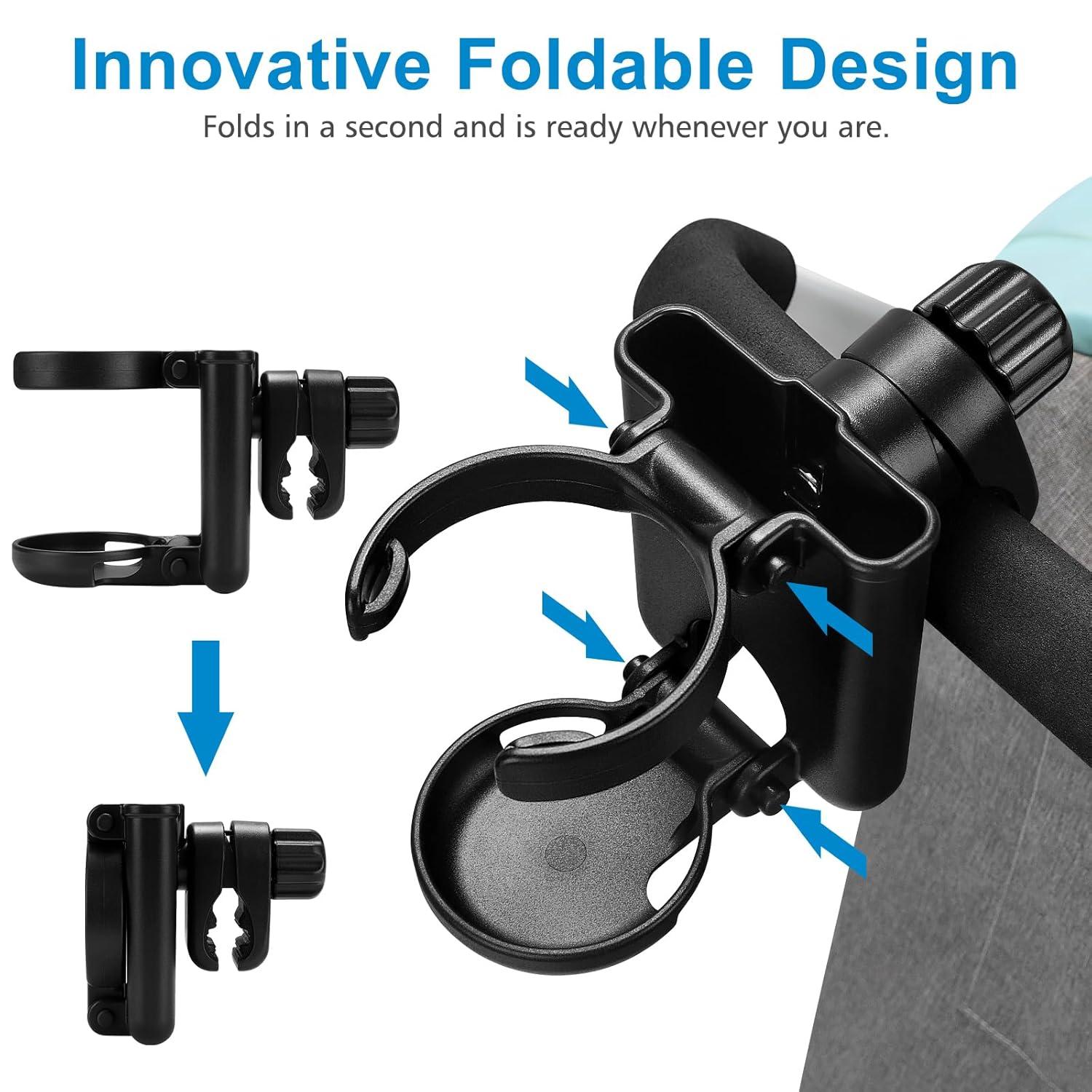 Accmor Stroller Cup Holder with Phone Holder, Foldable Universal Cup Holder, 360 ° Rotatable Bottle Holder for Stroller, Bike, Wheelchair, Walker, Scooter(Foldable)