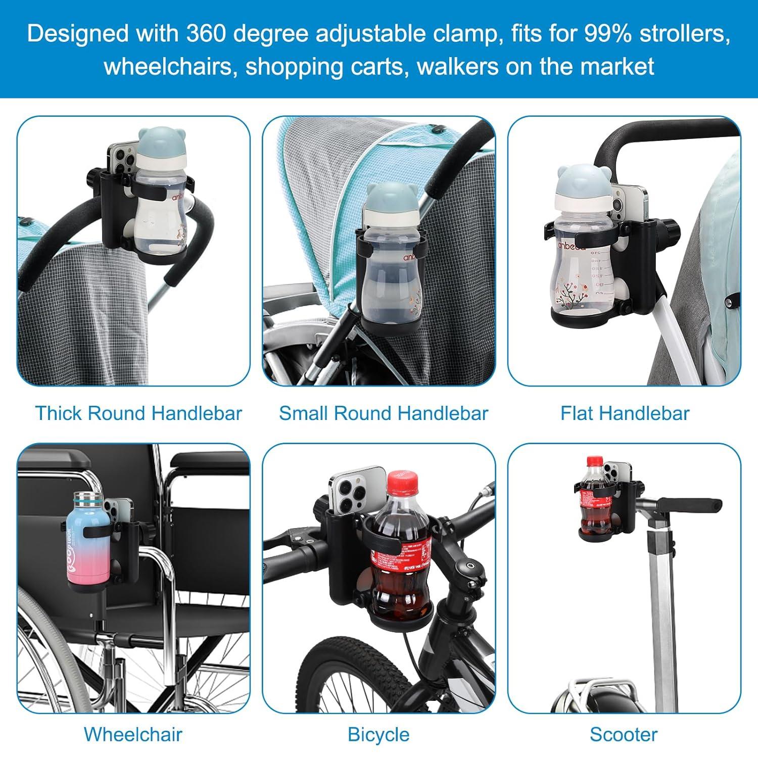 imageAccmor Stroller Cup Holder with Phone Holder Foldable Universal Cup Holder 360  Rotatable Bottle Holder for Stroller Bike Wheelchair Walker ScooterLarge Caliber1pc