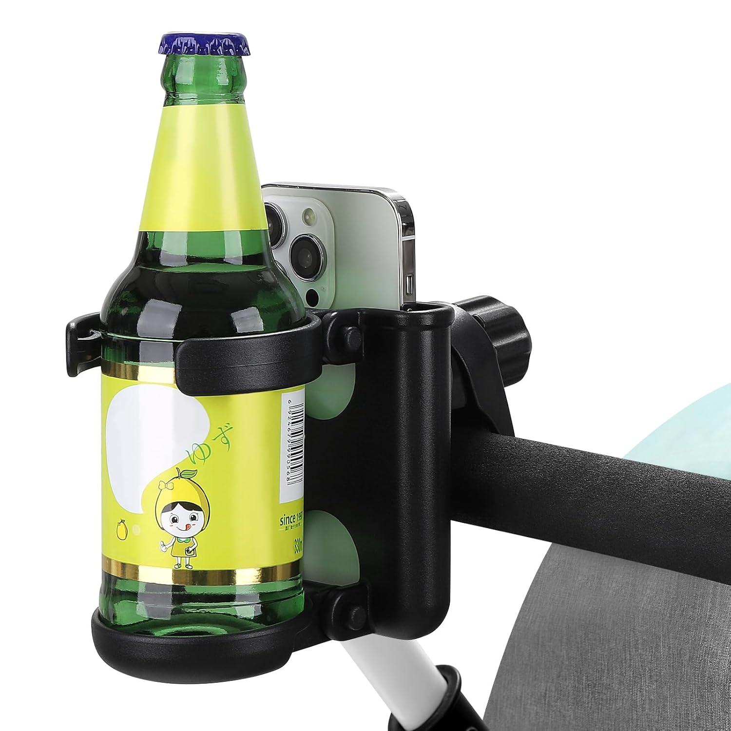 Holds Most Bottles & Phones: Accommodates bottles, cups, and mugs with diameters up to 3 inches (75mm), making it ideal for baby bottles, travel mugs, water bottles, and standard drink cups. The phone holder compatible with most cell phones up to 6.8 inches.