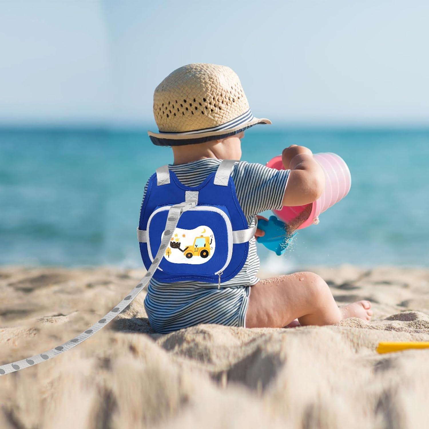 Accmor Toddler Harness Leash, Cute Excavator Child Walking Harness Tether Wristband Assistant Strap Belt Protector for Baby Boys, Collapsible Kids Leash + Anti Lost Wrist Link for Outdoor Travel Black(Dark Blue)