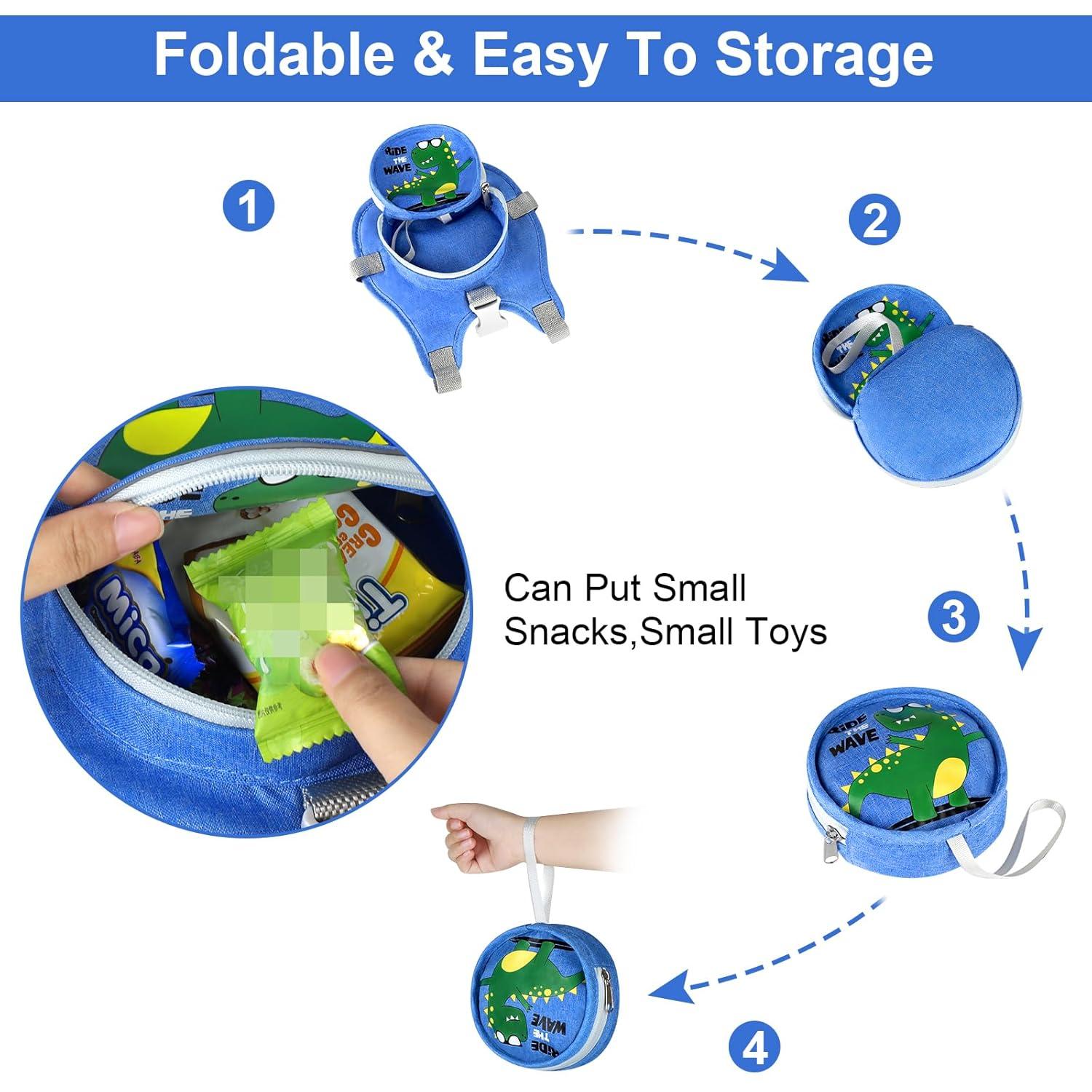 Accmor Toddler Safty Harness Leash, Cute Dinosaur Child Leashes + Reflective Anti Lost Wrist Link, Foldable Baby Walking Harness Pocket Kids Tether Protection for Boys Girls Aged 1-5 to Travel Outdoor(Navy Blue//Brachiosaurus)