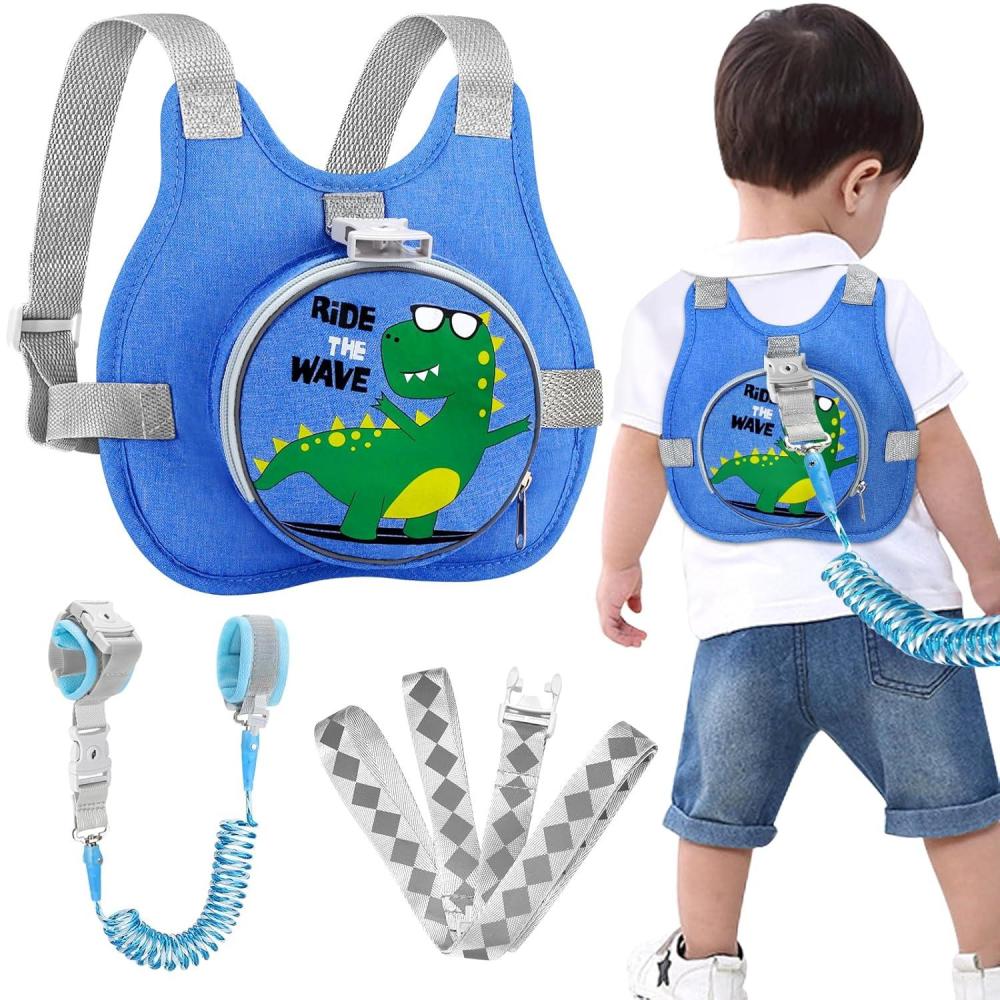 Accmor Toddler Safty Harness Leash, Cute Dinosaur Child Leashes + Reflective Anti Lost Wrist Link, Foldable Baby Walking Harness Pocket Kids Tether Protection for Boys Girls Aged 1-5 to Travel Outdoor(Blue/Tyrannosaurus Rex)