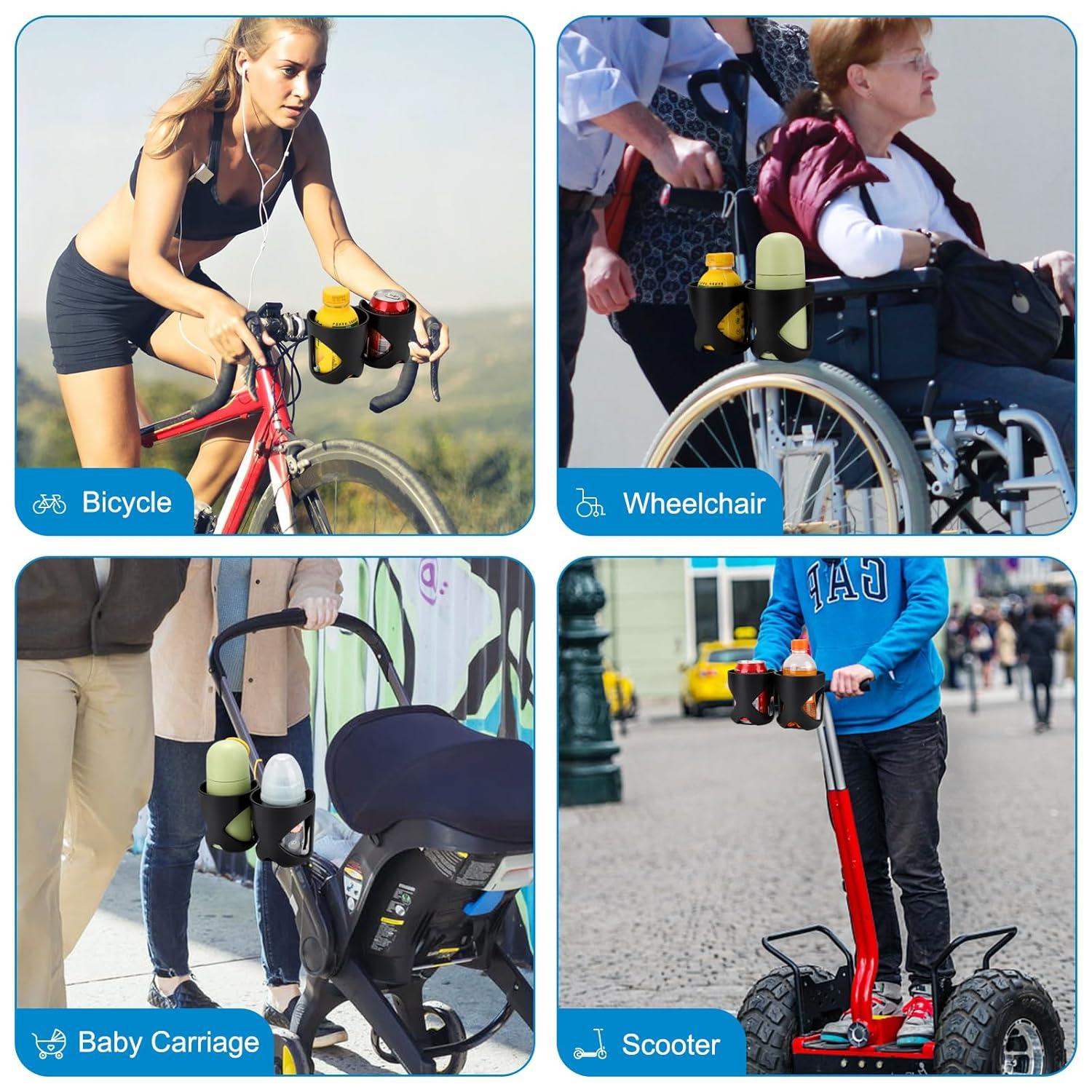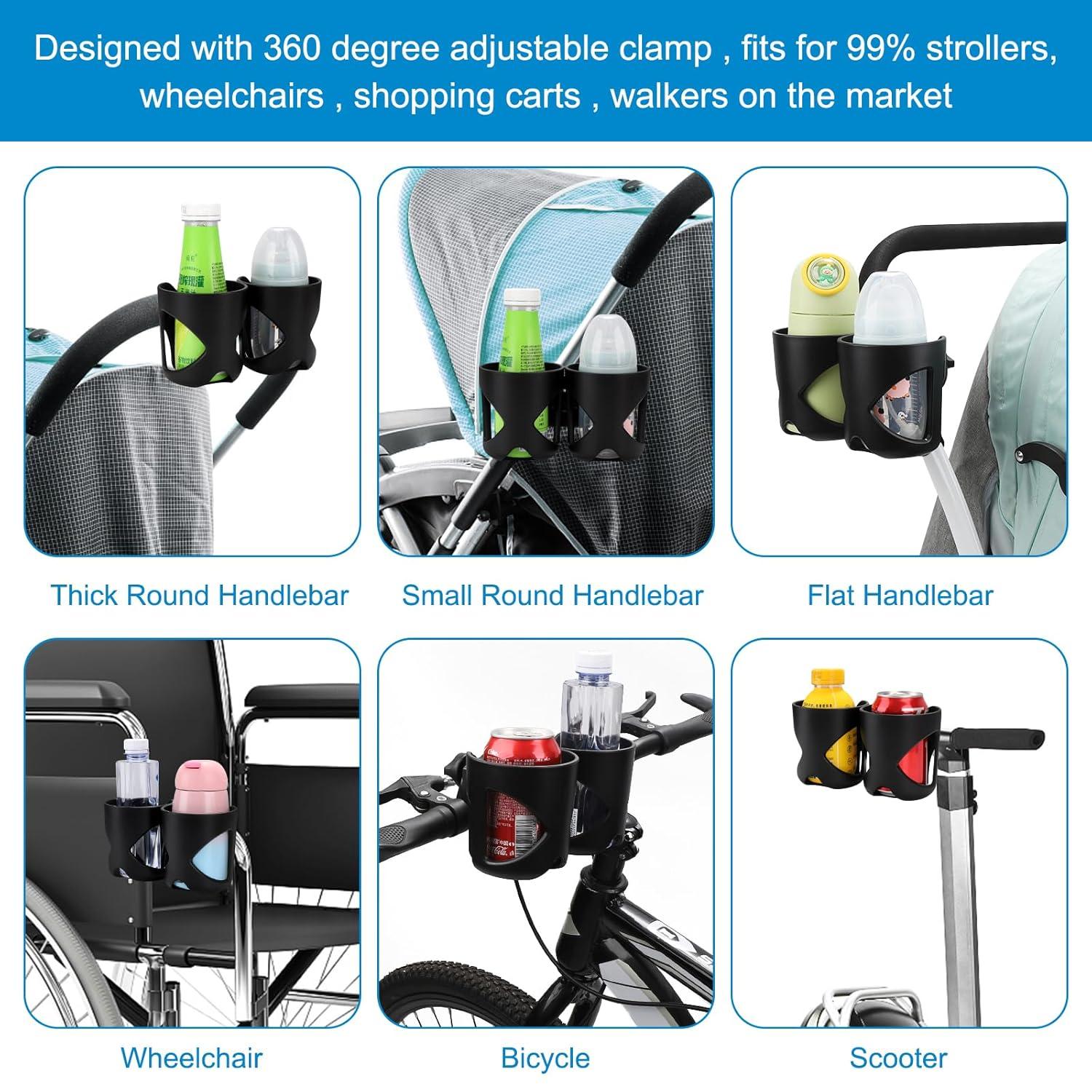 6. Bike cup holder, walker cup holder, wheelchair cup holder, stroller rollater walker wheelchair acccessories. It compatible with Uppababy, Doona, Nuna, Jogger, Britax, Bugaboo strollers etc