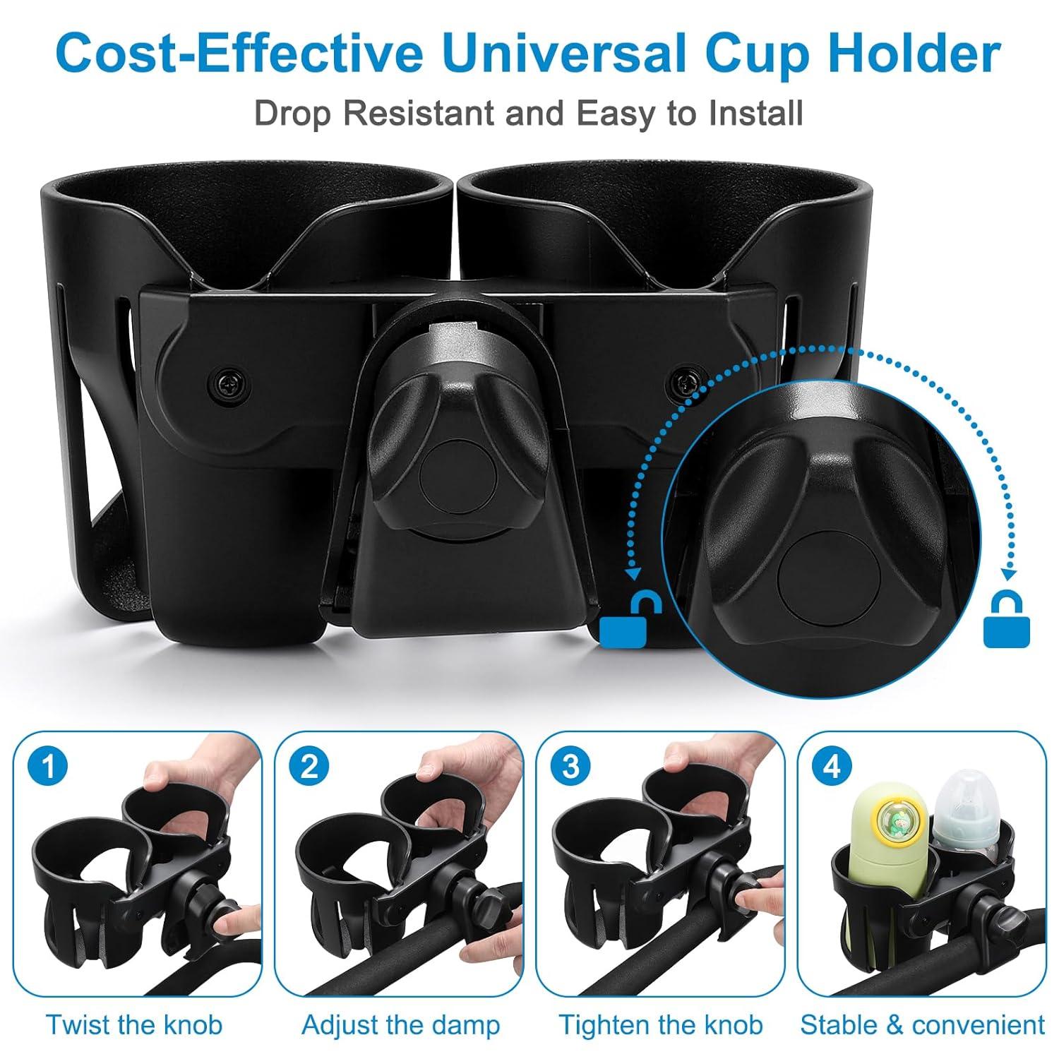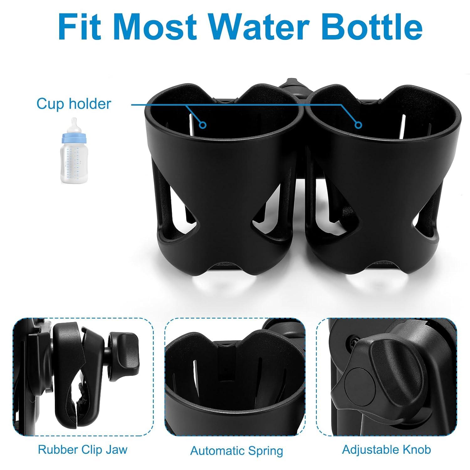 Accmor Universal Cup Holder, Stroller Cup Holder with Phone Holder, 360° Rotatable Large Caliber Designed Bottle Holder for Stroller, Bike, Wheelchair, Walker, Scooter(Double Holder)