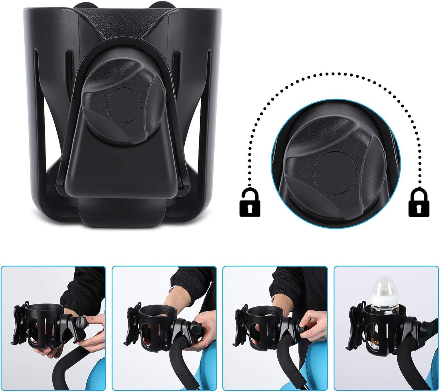 Cup holder is adjustable and suitable for all the bottles, whose diameter less than 95mm. The width of the cup holder clip can freely adjust, so the holder can be installed on different styles of strollers.