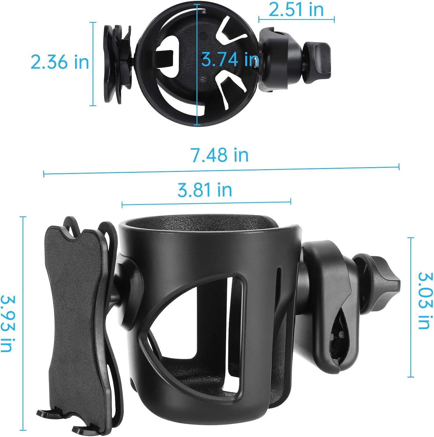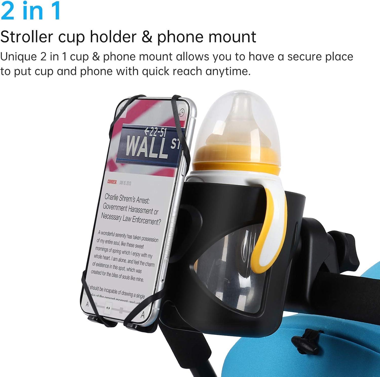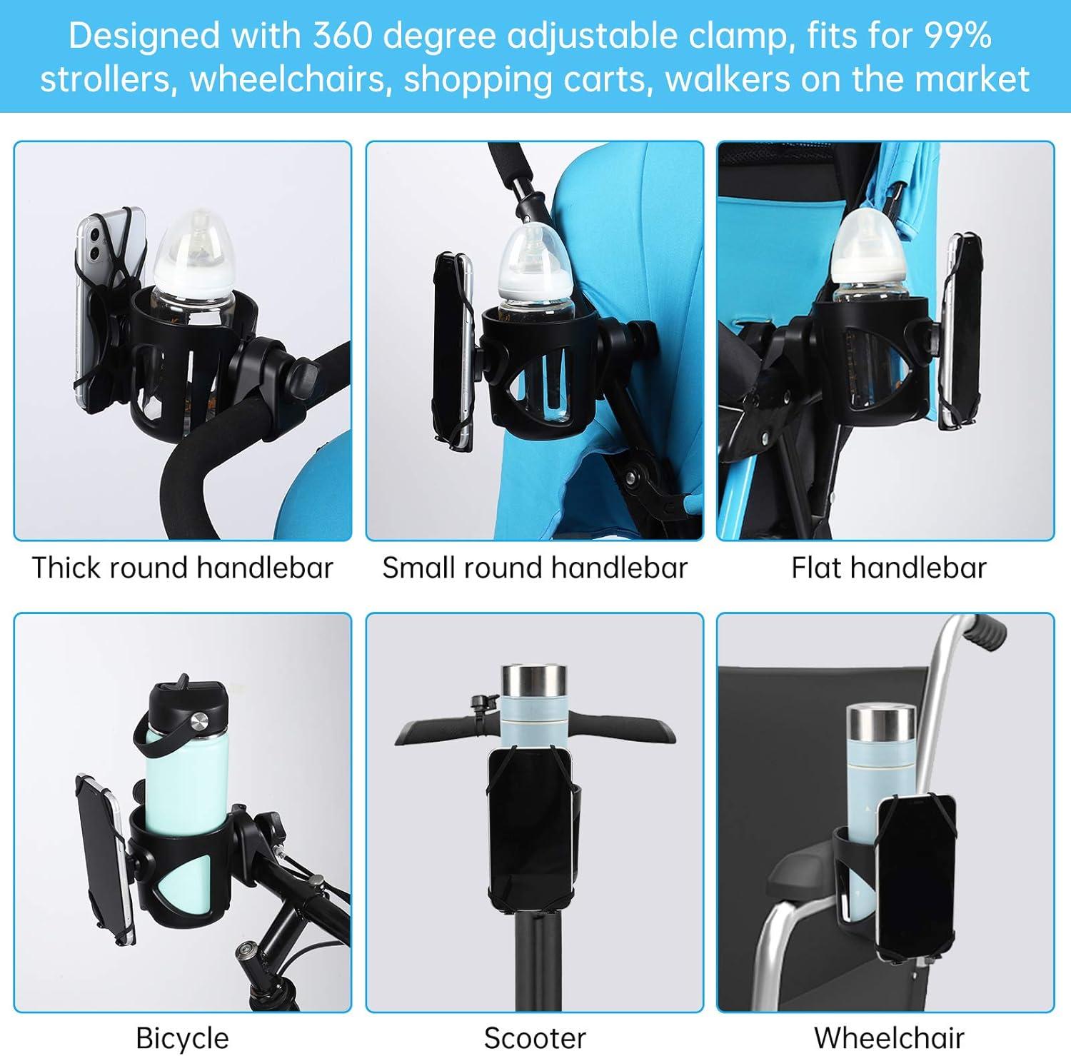 Accmor universal cup holder with phone organizer fits for most stroller , walker , wheelchair, bicycle, scooter, boat handle bar ,shopping cart, kayak, ATV, lawnmowers, motorcycle , treadmill etc.