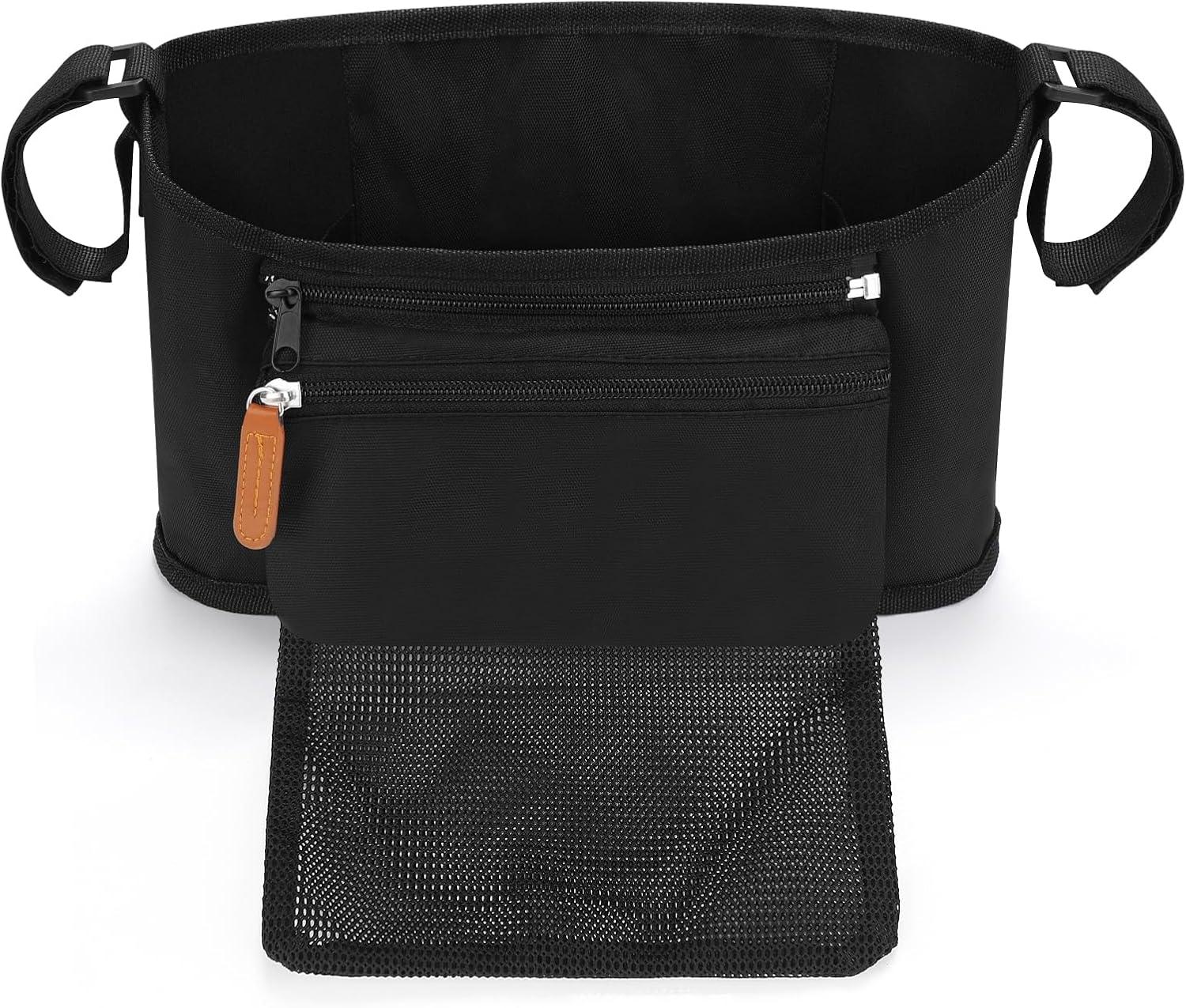 Accmor Universal Stroller Organizer with Detachable Phone Bag and Diaper Pocket, Stroller Bag Caddy Organizer Stroller Accessories for Uppababy, Baby Jogger, Nuna, Doona, Britax Strollers(Black-with Diaper Pocket)