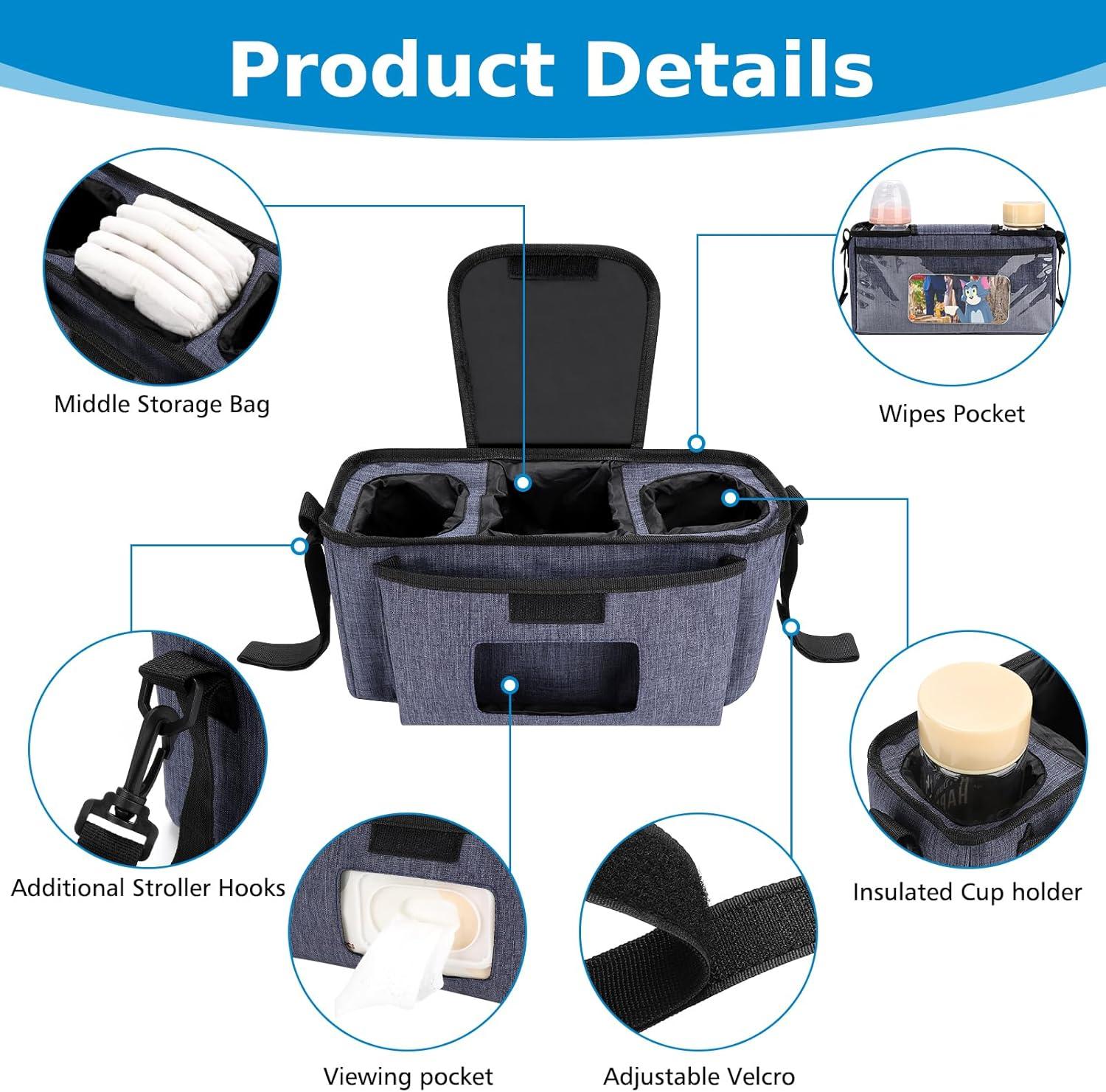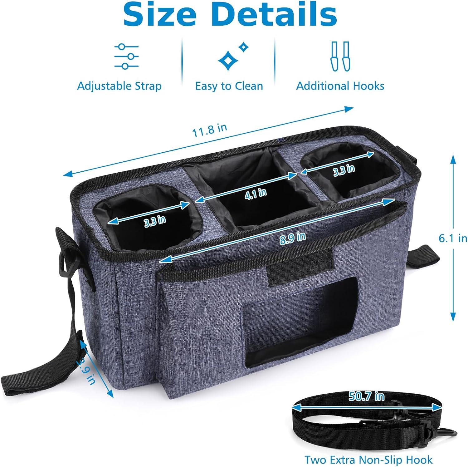 Multiple Usage Methods : It can be hung as a stroller cup holder organizer on the stroller. When you don't need to use a stroller, you can also install the accompanying strap and carry this organizer bag for easy outing.